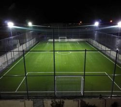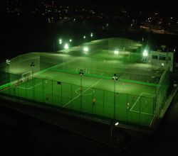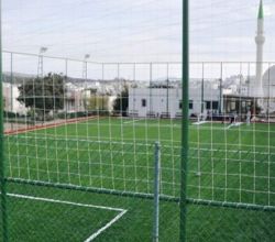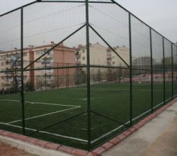 - Saha etrafı 3m yüksekliğinde 3,5 mm et kalınlığında, 50x50mm göz aralığında, daldırma galvanizli PVC kaplı helezon tel örgü ile kaplanır.
